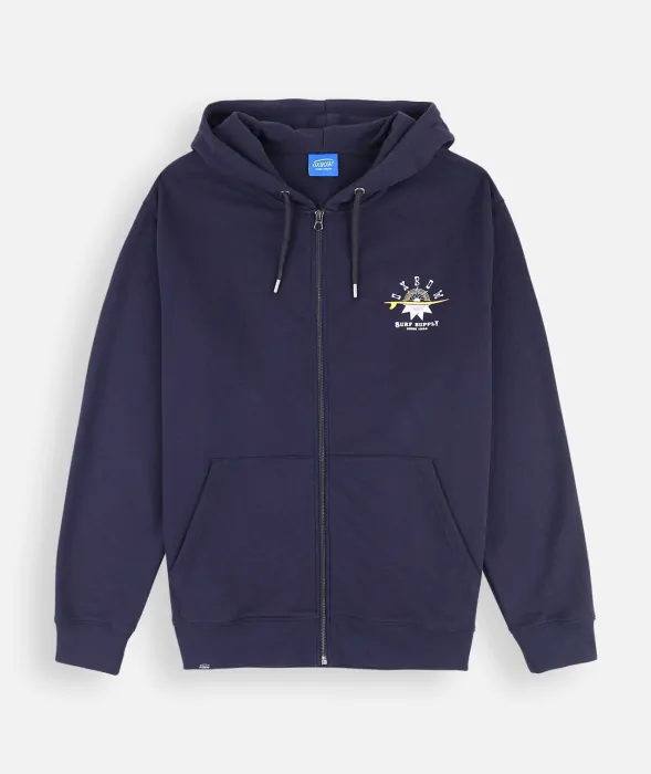 Postaw na swobodę, wygodę i surferski klimat! Ta bluza z kapturem, w głębokim odcieniu granatu Deep Marine, wyróżnia się dużym, inspirowanym surfingiem nadrukiem na plecach i subtelnym motywem na piersi. Wykonana z ekologicznego, miękkiego w dotyku materiału – połączenia bawełny organicznej i poliestru z recyklingu – gwarantuje komfort noszenia i świadomy wybór.