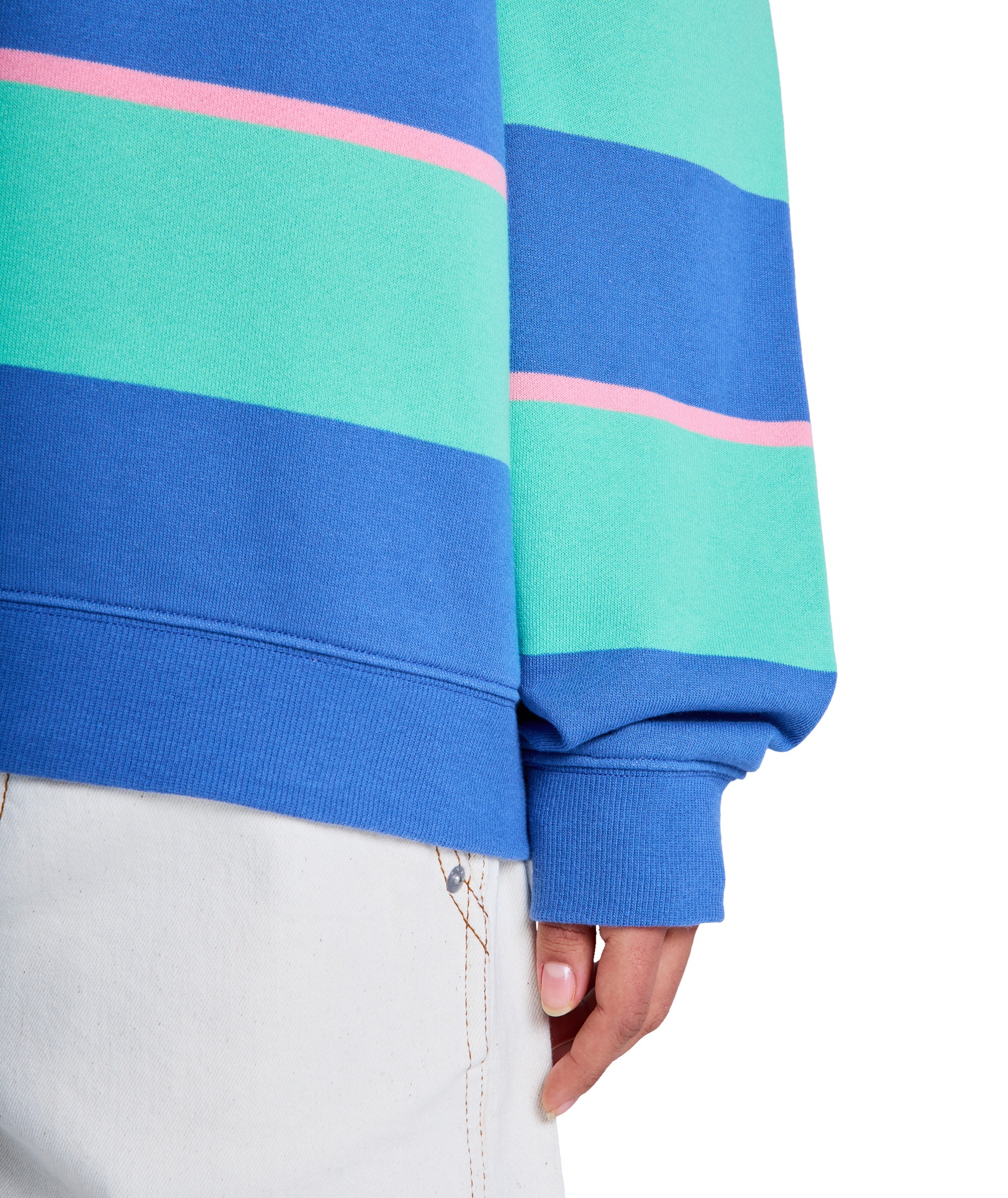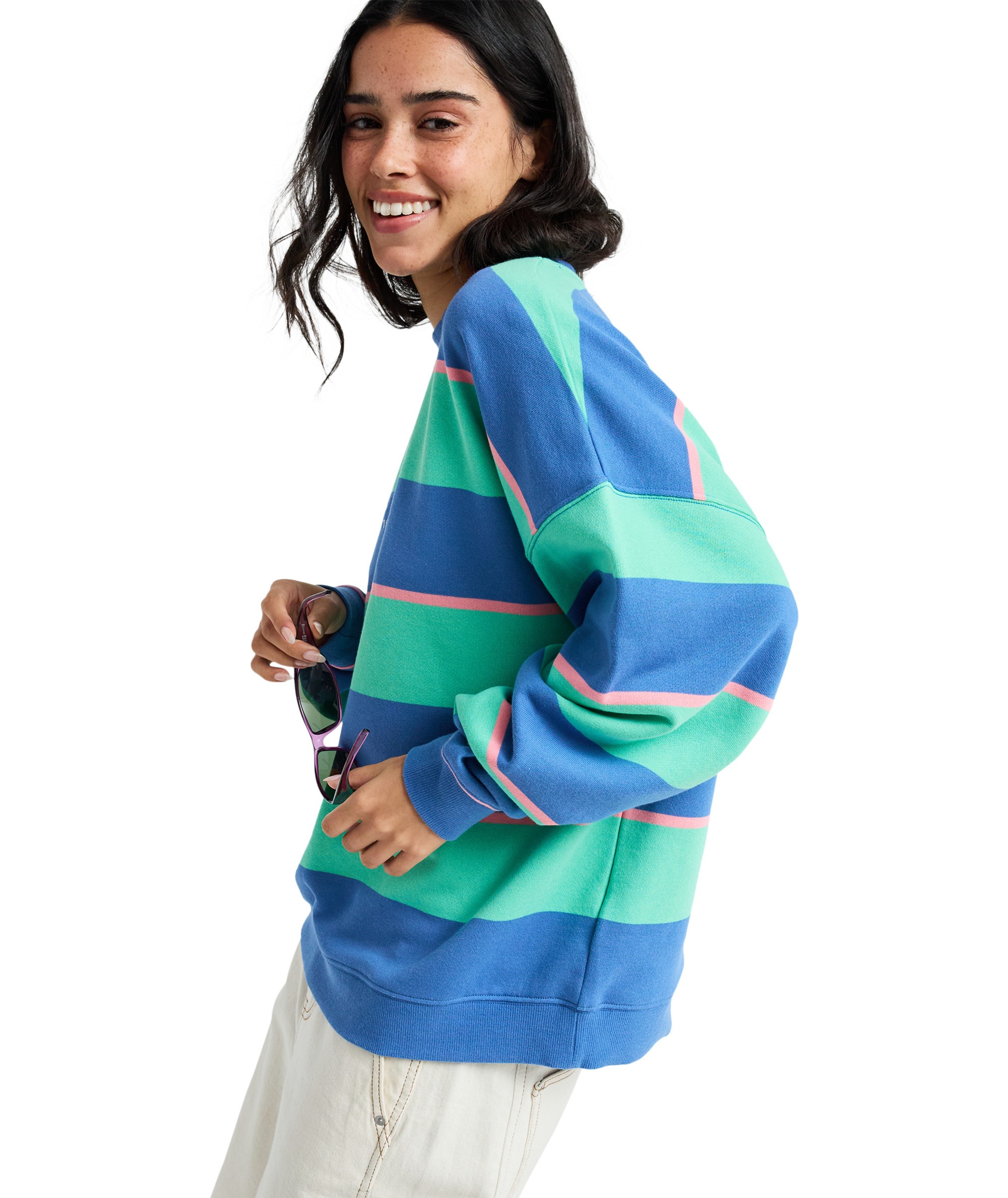 STRICTLY STRIPES OVERSIZED to wygodna i modna bluza oversize z okrągłym dekoltem, wykonana z wysokiej jakości frotte w paski barwione w przędzy (60% bawełna, 40% poliester, 250g/m²). Lekko szczotkowany materiał zapewnia miękkość i komfort noszenia, a paski w stylu heritage nadają klasyczny, ponadczasowy charakter.