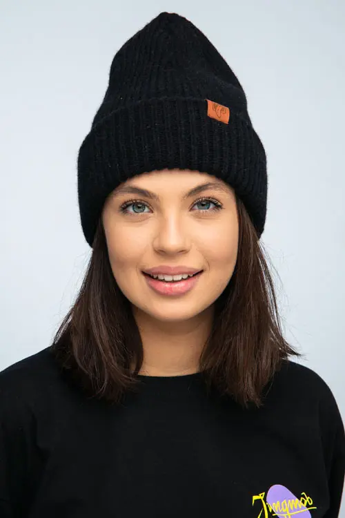 MERINO BLACK czyli połączenie wełny oraz kaszmiru. Czapka jest wyjątkowo miękka oraz miła dla skóry. Idealnie sprawdzi się podczas zimowych temperatur oraz chłodniejszych letnich wieczorów.