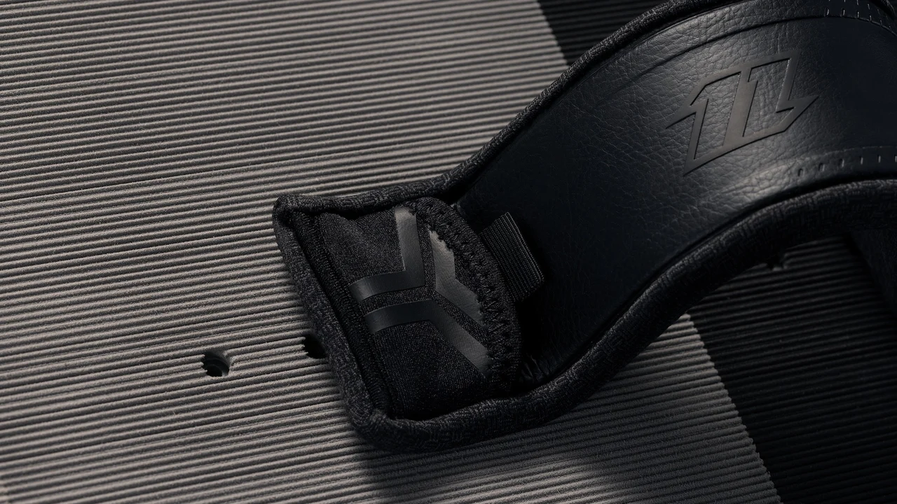 Sztruksowy pokład o maksymalnej przyczepności zapewnia wygodny chwyt i wizualne odniesienie od podstawy. Możliwe 5 różnych opcji pozycjonowania footstrapa.