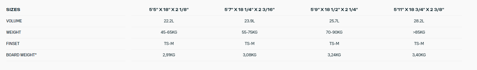 Rozmiary: 5'5" / 5'7" / 5'9"