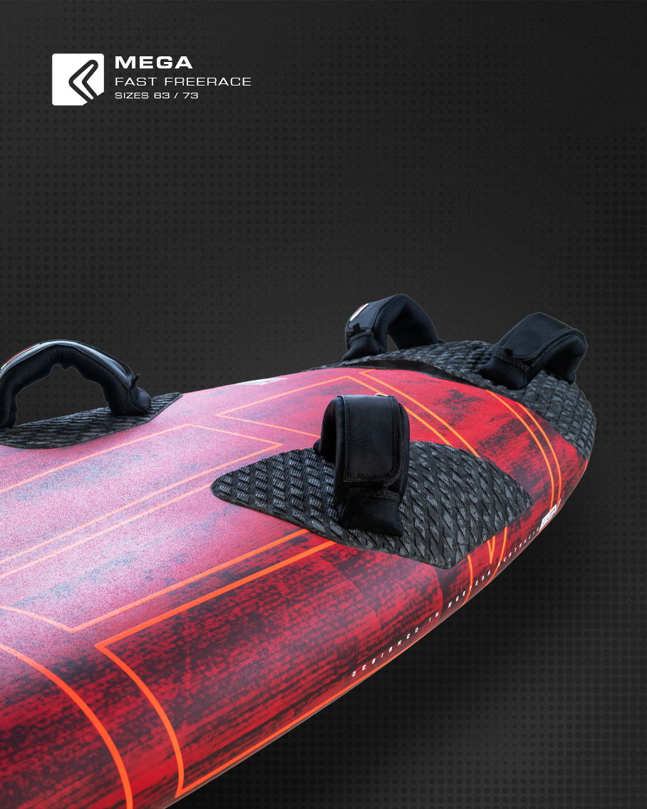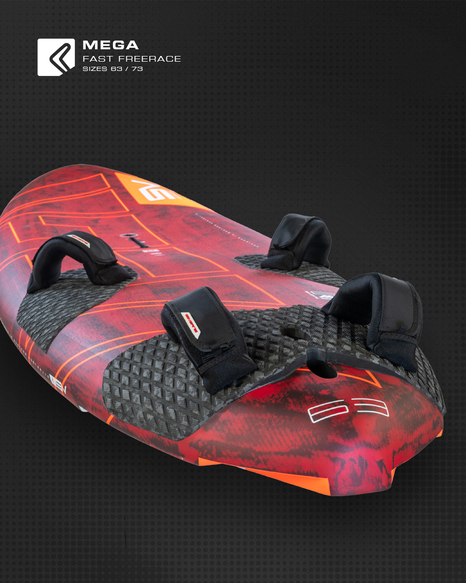 Freerace oznacza szybkość i komfort; deska MEGA przenosi te cechy na wyższy poziom, w odróżnieniu od innych desek freerace.