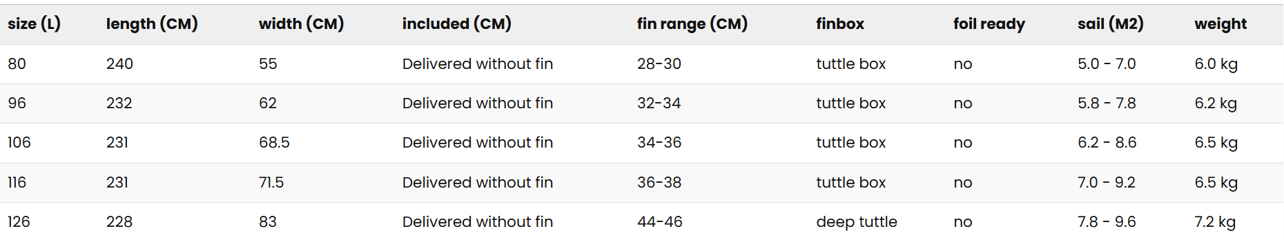 - Precyzyjnie dopasowany rocker i objętość – każdy rozmiar jest indywidualnie zoptymalizowany pod kątem maksymalnej prędkości i efektywnego przeniesienia mocy.
