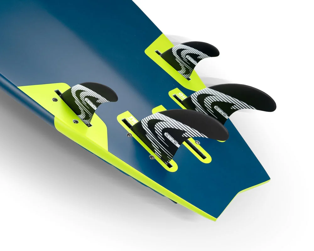 Wyposażony w konfigurację quad fin, Flywave G6 jeździ z większą przyczepnością i kontrolą przy większych prędkościach na fali. Siła zestawu finów działa bardziej do przodu, co wbija przednią szynę w wodę i zapewnia desce dodatkową kontrolę podczas długich skrętów. Jednocześnie mniejsza wysokość dwóch tylnych finów ułatwia ustawienie krawędzi przy dużych prędkościach, co oznacza, że deska jest bardziej responsywna w warunkach side sh. - Aalternatywna kofniguracja finów // TRI