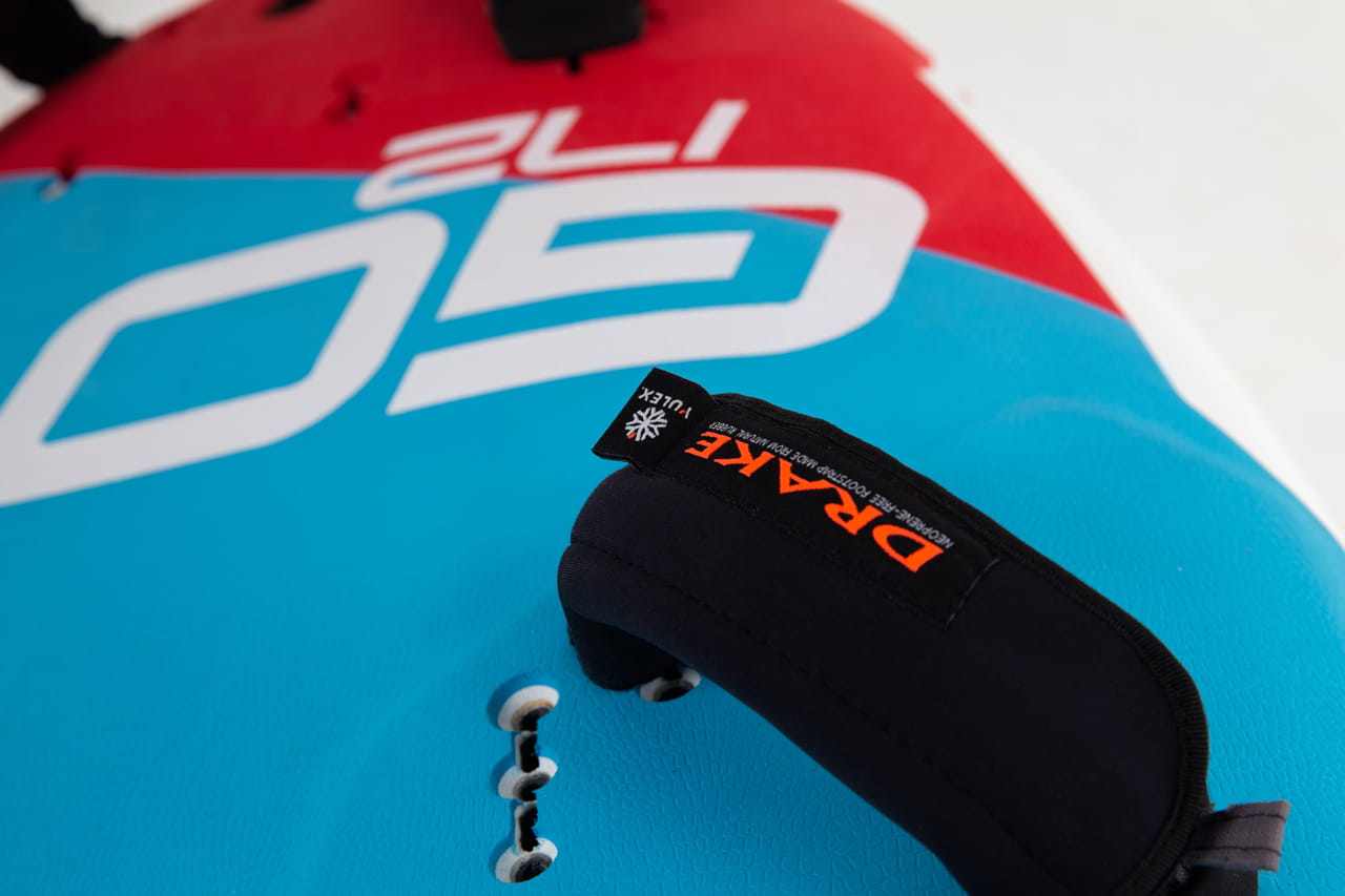 że deska jest bardziej stabilna i gotowa do przyspieszenia z każdym podmuchem wiatru. Bardziej pionowa pozycja pędnika sprzyja lepszej kontroli, poprawia wydajność jibingu poprzez zapewnienie większego nacisku i zapewnia większą przyczepność, moc i kontrolę podczas carvingu. Opcjonalny fin centralny Drake Shallow pomaga utrzymać się