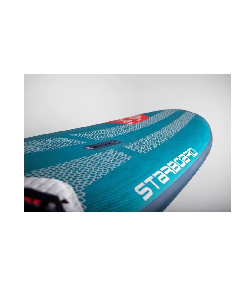 Pełny wood sandwich — 0,6 mm australijskiej sosny — zapewnia trwałość i komfort przy świetnym stosunku wytrzymałości do wagi. W dzisiejszych deskach drewno jest mniej widoczne przez nowoczesną grafikę; chronione przed UV świeżą, niebieską farbą i naklejkami, które podkreślają naturalny rysunek drewna, tworząc naprawdę świetny efekt. To eleganckie, współczesne odświeżenie klasycznego oryginału Starboard.