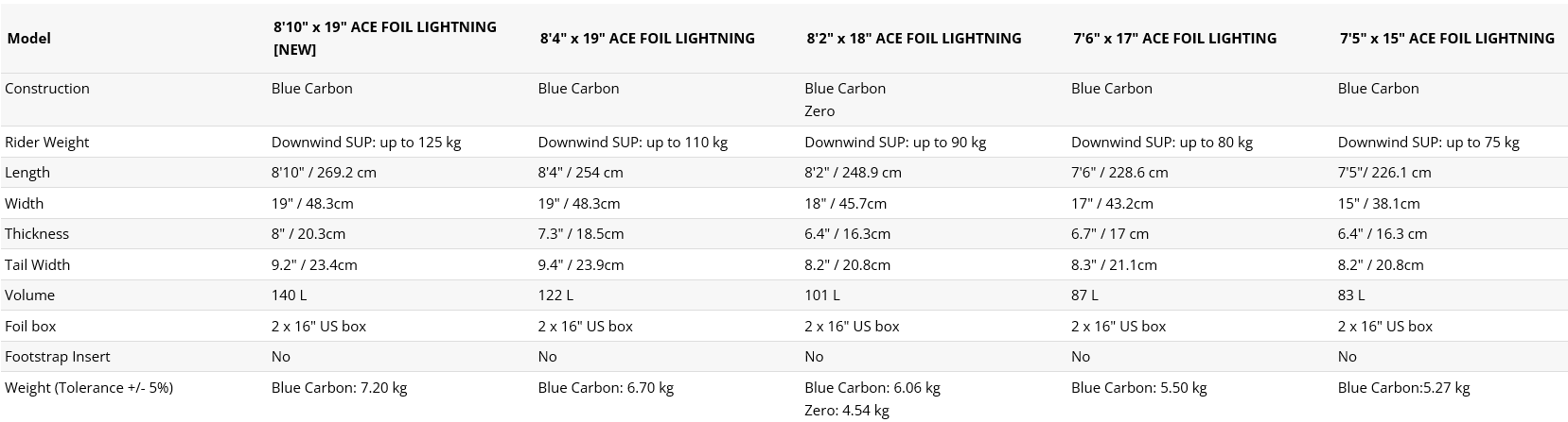 Ultra wąskie rozmiary zapewniają najszybciej przyspieszające osiągi w downwindzie. Przyspieszaj jak nigdy dotąd i osiągaj imponująco szybkie starty. Dłuższe i węższe wersje Ace Foil Lightning oferują zaskakującą stabilność oraz niesamowite osiągi w pływaniu z wiatrem.
