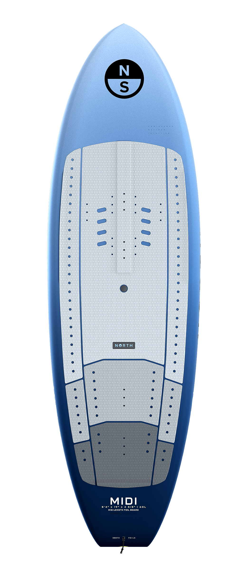 Deska wing North Midi 2025 to smukła, średniej długości deska crossover do wingfoila, zoptymalizowana pod kątem efektywności na wodzie i szybkich przejść na foila.