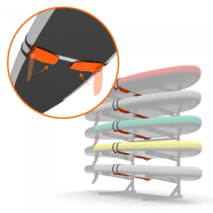 Łatwy montaż: Montaż nie wymaga użycia narzędzi ani kleju – stateczniki mocuje się do deski za pomocą regulowanych pasów, co pozwala na szybkie przygotowanie sprzętu do użytku.