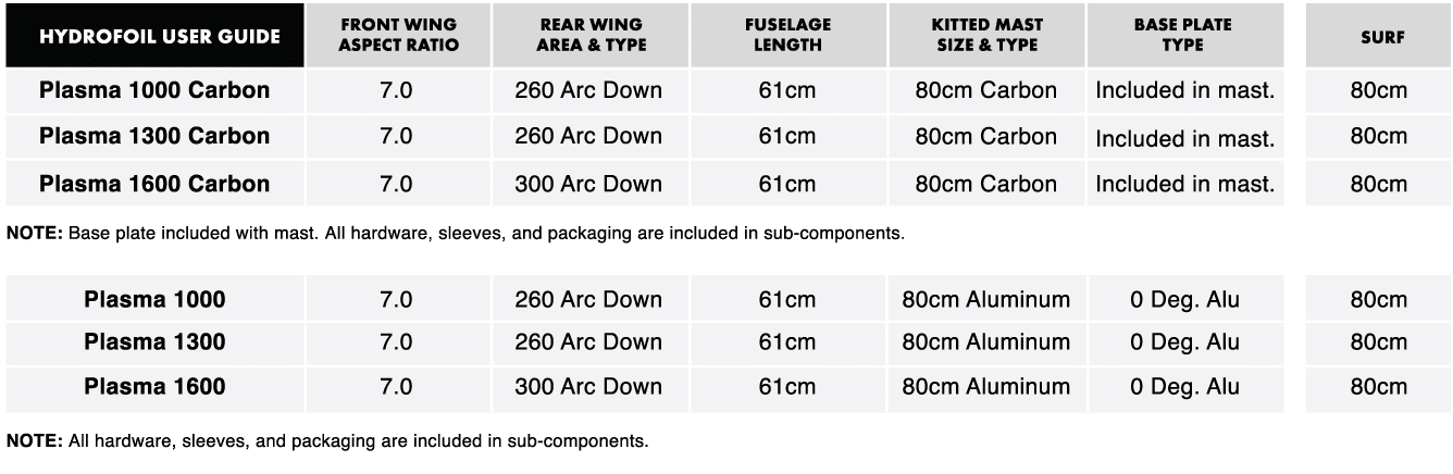 - High Aspect Ratio: Wykonana z karbonu seria Plasma o wysokim aspekcie idealnie sprawdza się w pump foilingu, długim ślizgu (glide) i przy wyższych prędkościach.