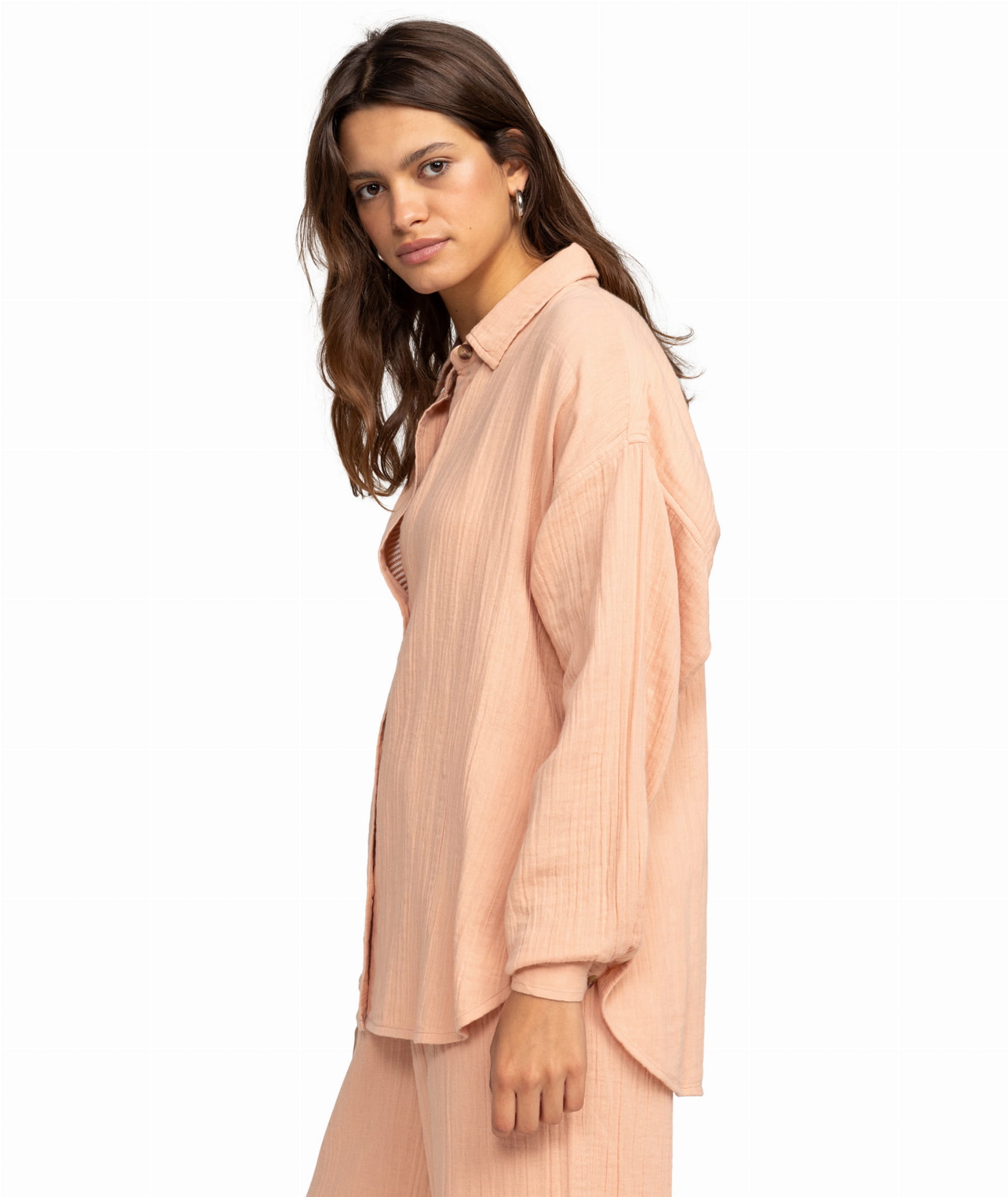 Elegancka i wygodna koszula w stylu boyfriend, wykonana z podwójnej gazy organicznej bawełny, idealna na ciepłe dni. Jej luźny krój, klasyczny kołnierzyk i subtelne detale, jak guziki z recyklingu, nadają jej wyjątkowego, relaksującego charakteru, a duże boczne rozporki zapewniają komfort i swobodę ruchów.