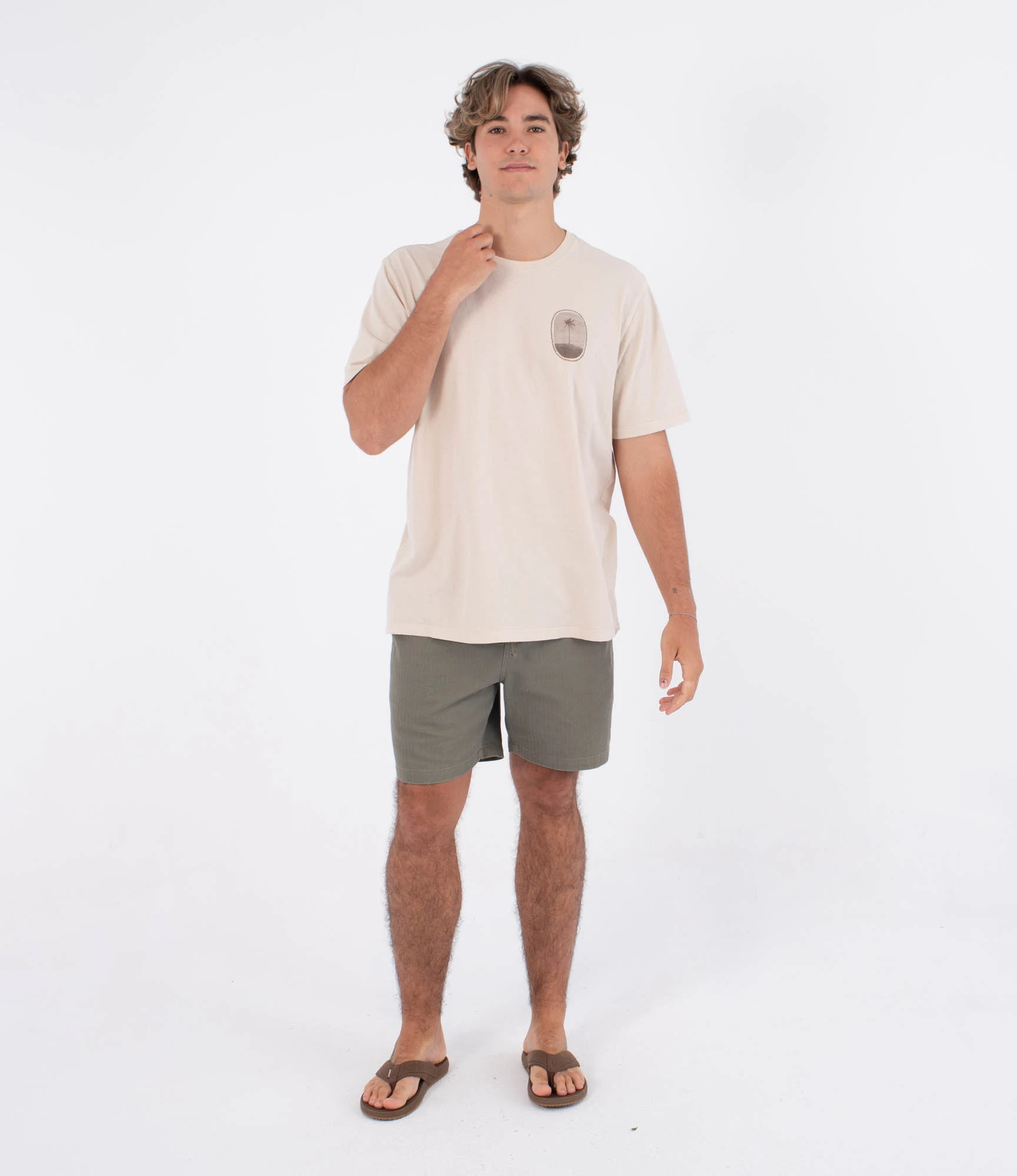 Kolor jasnego beż sprawia, że koszulka jest uniwersalna i łatwa do łączenia z jeansami, szortami czy chinosami – idealna zarówno