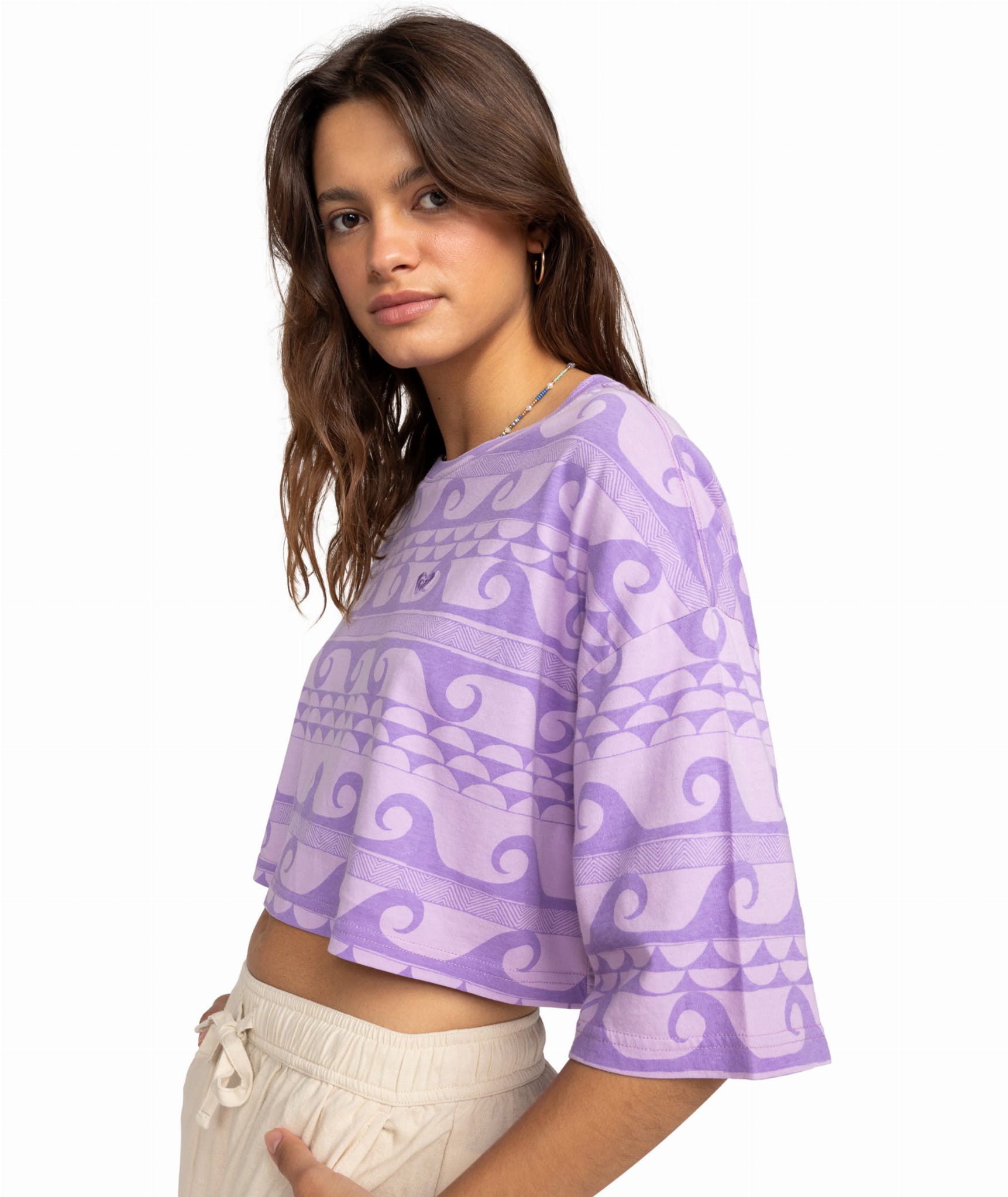 Krój: Oversize crop – luźniejszy i krótszy, z dłuższymi rękawami