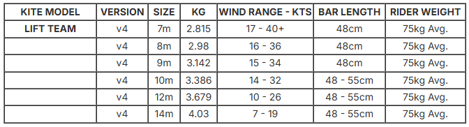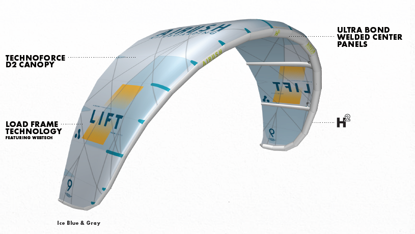 Kluczową różnicą wersji Team jest zastosowanie nowej generacji materiału H2 Ultra PE na krawędzi natarcia i tubach poprzecznych. W rozmiarze 9 m waga została obniżona aż o 220 g w porównaniu do klasycznego Lifta, a jednocześnie znacząco wzrosła sztywność i trwałość konstrukcji. Sztywniejszy materiał pozwolił na zmniejszenie średnicy krawędzi natarcia, co redukuje opory powietrza, poprawia aerodynamikę i sprawia, że latawiec reaguje szybciej i bardziej precyzyjnie.
