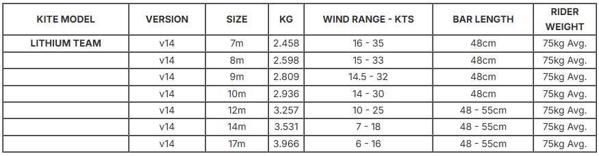 Lithium Team V14 został zaprojektowany jako minimalistyczna, ultraefektywna maszyna freeride’owa. Cieńsza krawędź natarcia, pompowana do wyższego ciśnienia znacząco redukuje opory powietrza, co przekłada się na lepszą jazdę pod wiatr, większą stabilność i szybszą reakcję na ruchy barem. Latawiec jest lekki na barze, bardzo przewidywalny i łatwy w prowadzeniu, co sprawia, że świetnie odnajdzie się zarówno w rękach ambitnych średniozaawansowanych riderów, jak i bardziej doświadczonych kitesurferów.