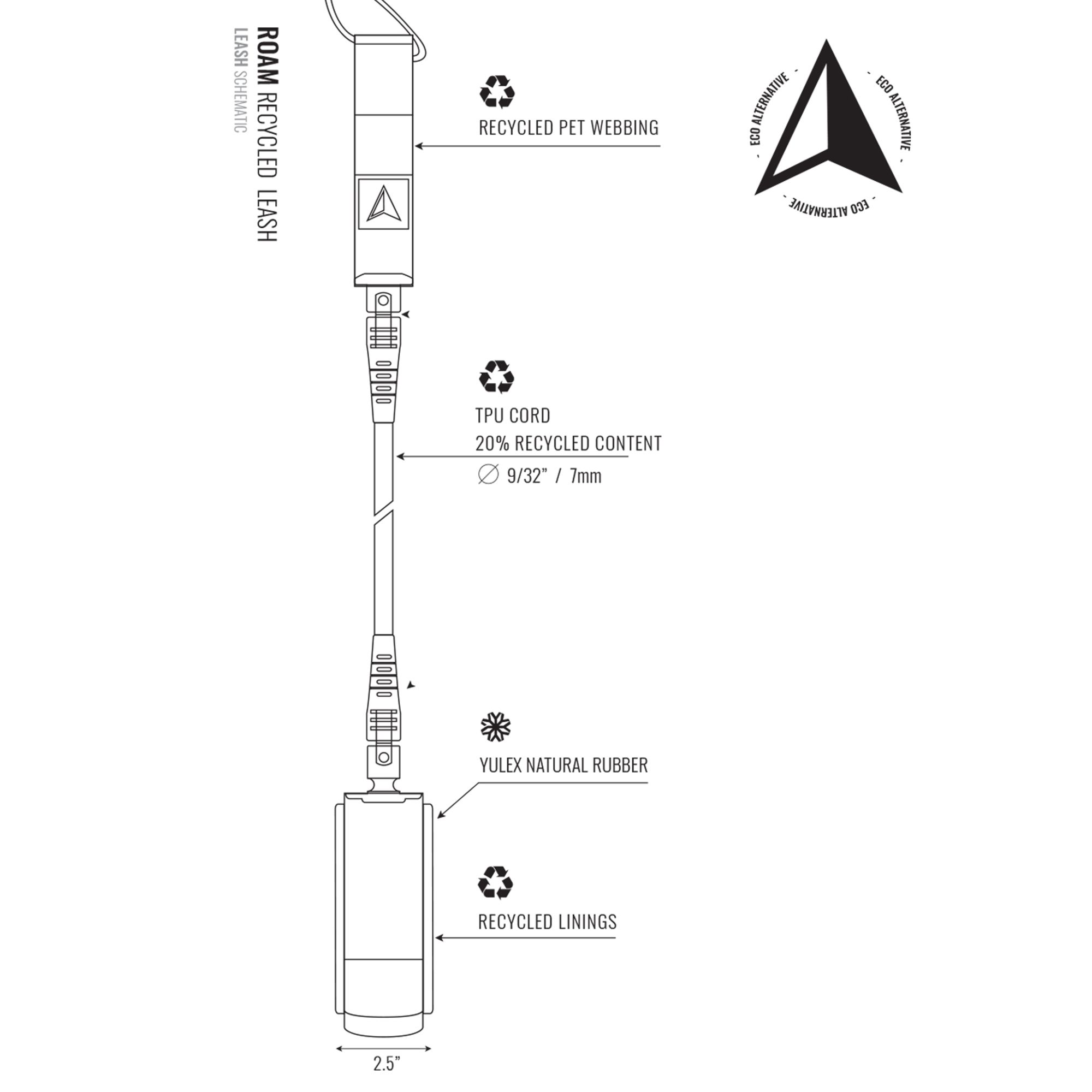 ROAM Surfboard ECO Leash Recycled 7.0” / 7 mm — Black