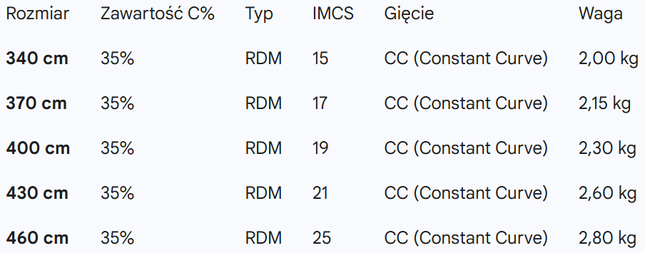 - Zbalansowana konstrukcja (35% Carbon): Domieszka węgla sprawia, że maszt jest lżejszy i bardziej responsywny niż modele w pełni epoksydowe (EPX), zachowując przy tym ogromną odporność na złamania i uszkodzenia mechaniczne.