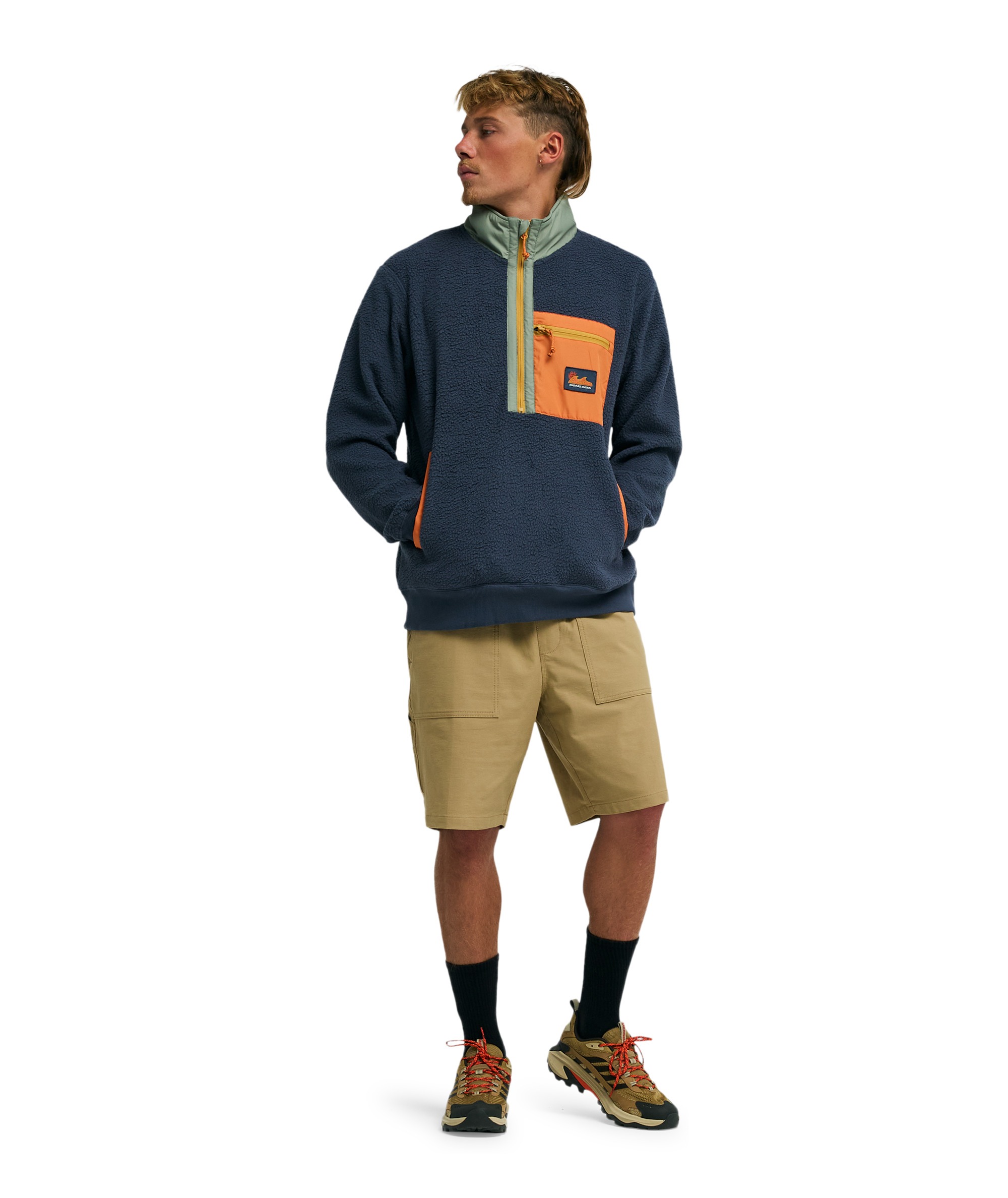 BOUNDARY SHORE to funkcjonalny półgolf z zamkiem półpełnym (half zip) wykonany z wysokiej jakości polaru polarowego o gramaturze 300 g, w 70% z poliestru z recyklingu i 30% z poliestru. Dzięki miękkiej i ciepłej tkaninie zapewnia komfort termiczny podczas aktywności na świeżym powietrzu.