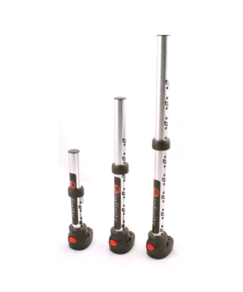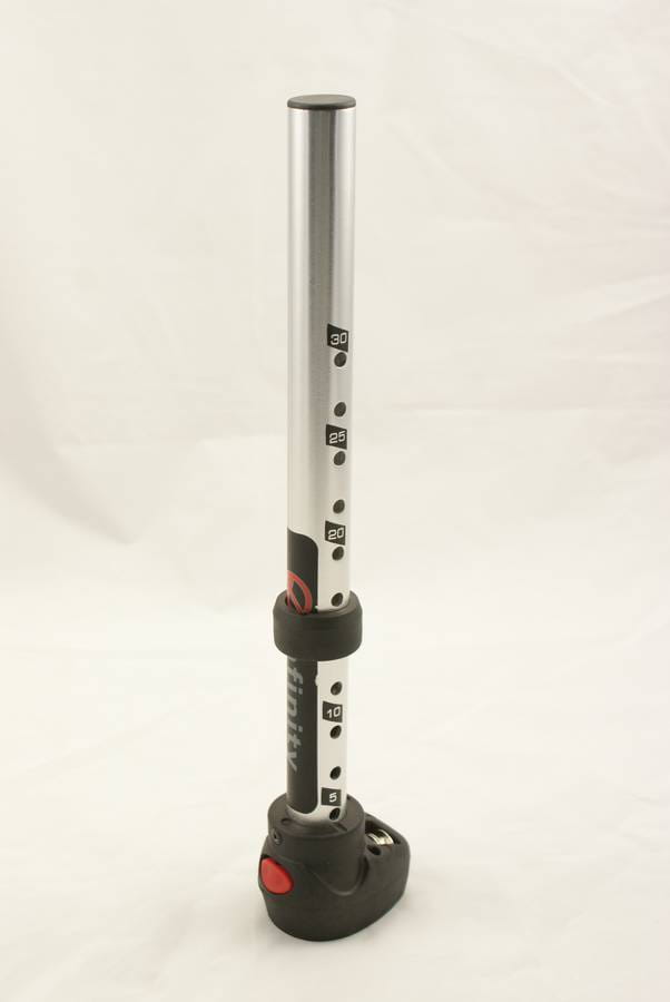 Bezpieczeństwo i trwałość zapewnia mechanizm blokujący oparty na sprawdzonym systemie typu Euro Pin (na jeden pin). Przedłużka wyposażona jest w wygodny przycisk zwalniający oraz solidny pierścień regulacyjny, który pozwala na szybką zmianę długości co 2,5 centymetry. W stopie przedłużki zintegrowano wytrzymałą knagę, która pewnie trzyma linkę i zapobiega jej przypadkowemu wyślizgnięciu się podczas sesji na wodzie.