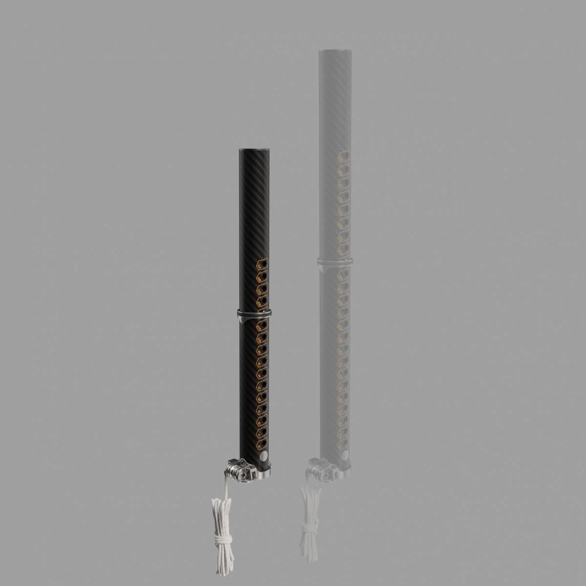 Przedłużka oferuje płynny zakres regulacji z czytelną podziałką, co pozwala szybko dopasować długość do konkretnego żagla. -