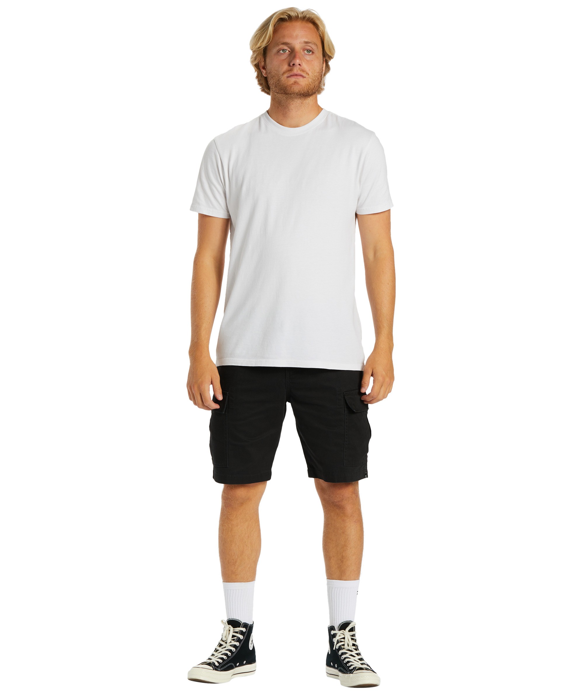 Spodenki męskie Billabong Combat Cargo to stylowe, militarnie inspirowane cargo shorts, łączące funkcjonalność z casualowym designem. Wykonane w 100% z bawełny w tkaninie typu broken twill, są trwałe i wygodne w noszeniu. Model posiada 6 praktycznych kieszeni – dwie duże boczne cargo, dwie skośne przednie, dwie tylne na guziki oraz małą kieszonkę użytkową, co sprawia, że spodenki idealnie sprawdzą się do przechowywania najpotrzebniejszych rzeczy. Dodatkowo detal w postaci wszytej metki Billabong podkreśla stylowy charakter modelu.