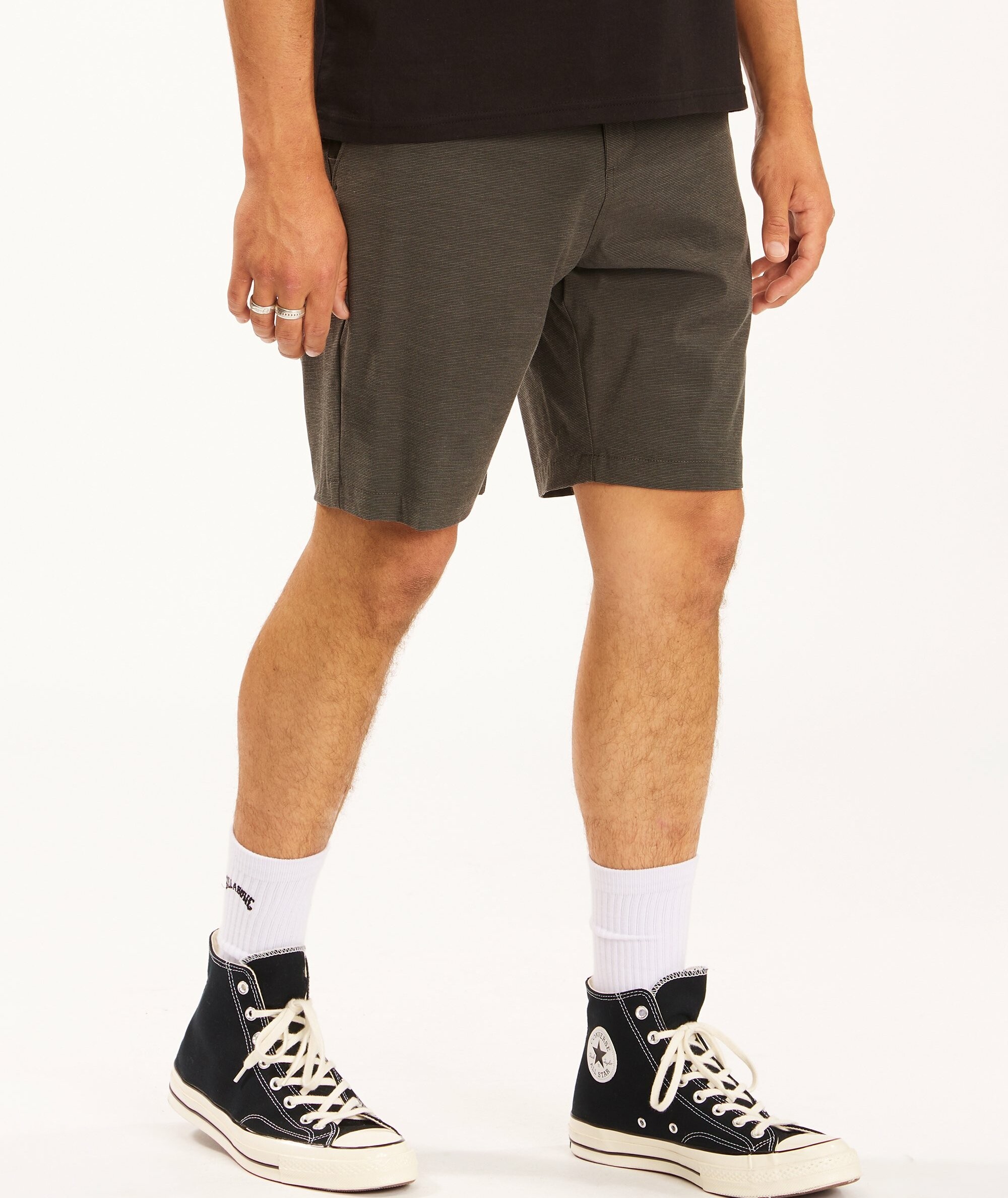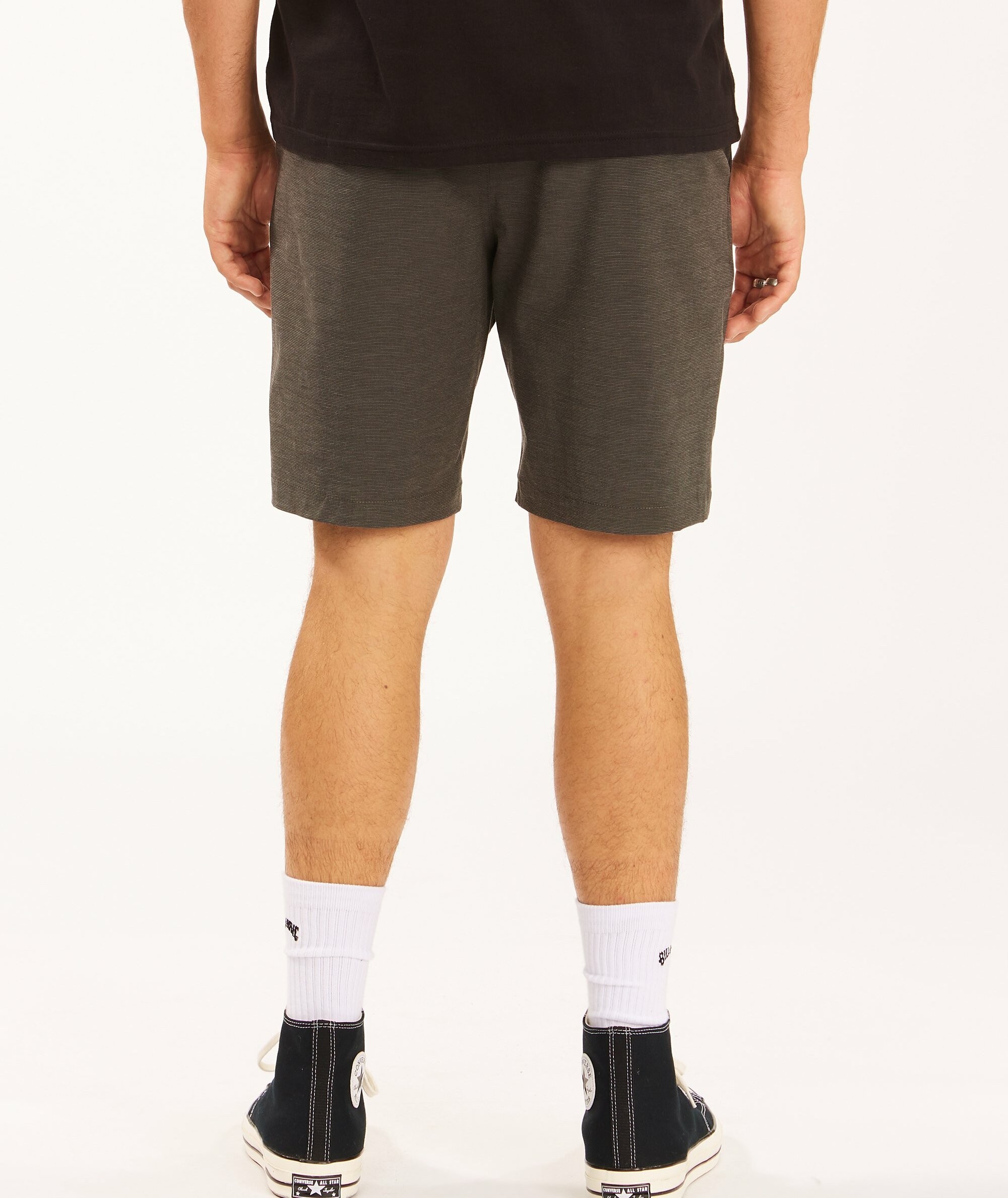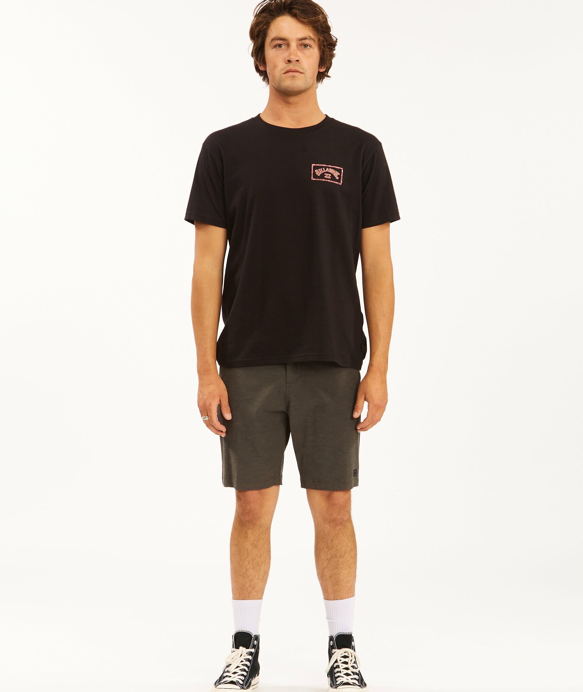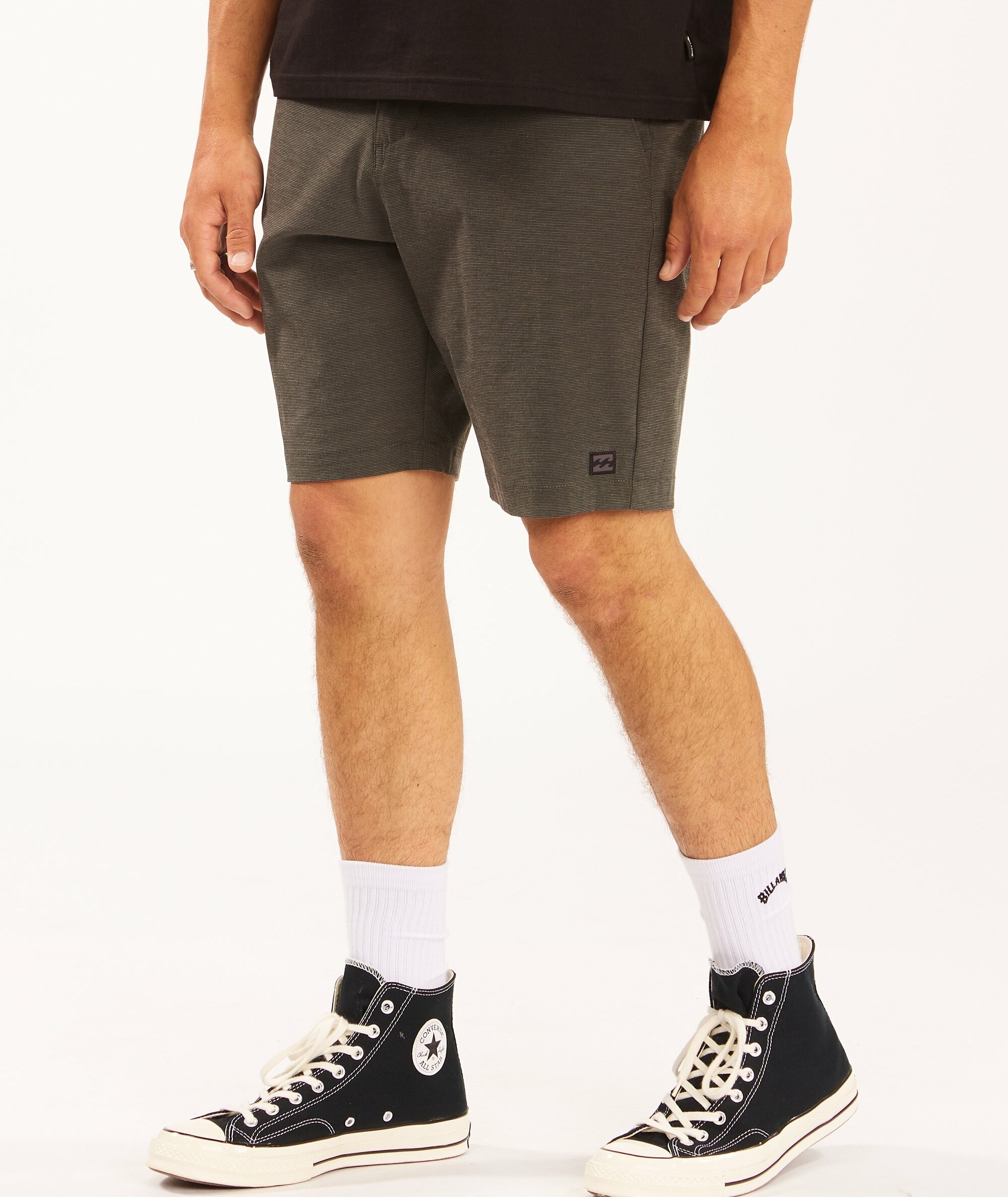 Spodenki męskie Billabong Crossfire Mid to funkcjonalne i wygodne walkshorty submersible, stworzone z myślą o aktywnym wypoczynku nad wodą i codziennych letnich stylizacjach. Wykonane z materiału 4-way stretch z recyklingowanego PET, łączą elastyczność z szybkoschnącą, wodoodporną tkaniną Micro Repel. Model o kroju Core fit ma klasyczny chino styling z praktycznym zamkiem w tylnej prawej kieszeni oraz dodatkowe detale brandingowe: Recycler Stretch flag label na pasku, word mark label nad tylną kieszenią i Wave label przy dolnym brzegu nogawki. Wnętrze pasa wykonane w formie Crossfire jacquard waistband dodaje komfortu i stylowego wykończenia.