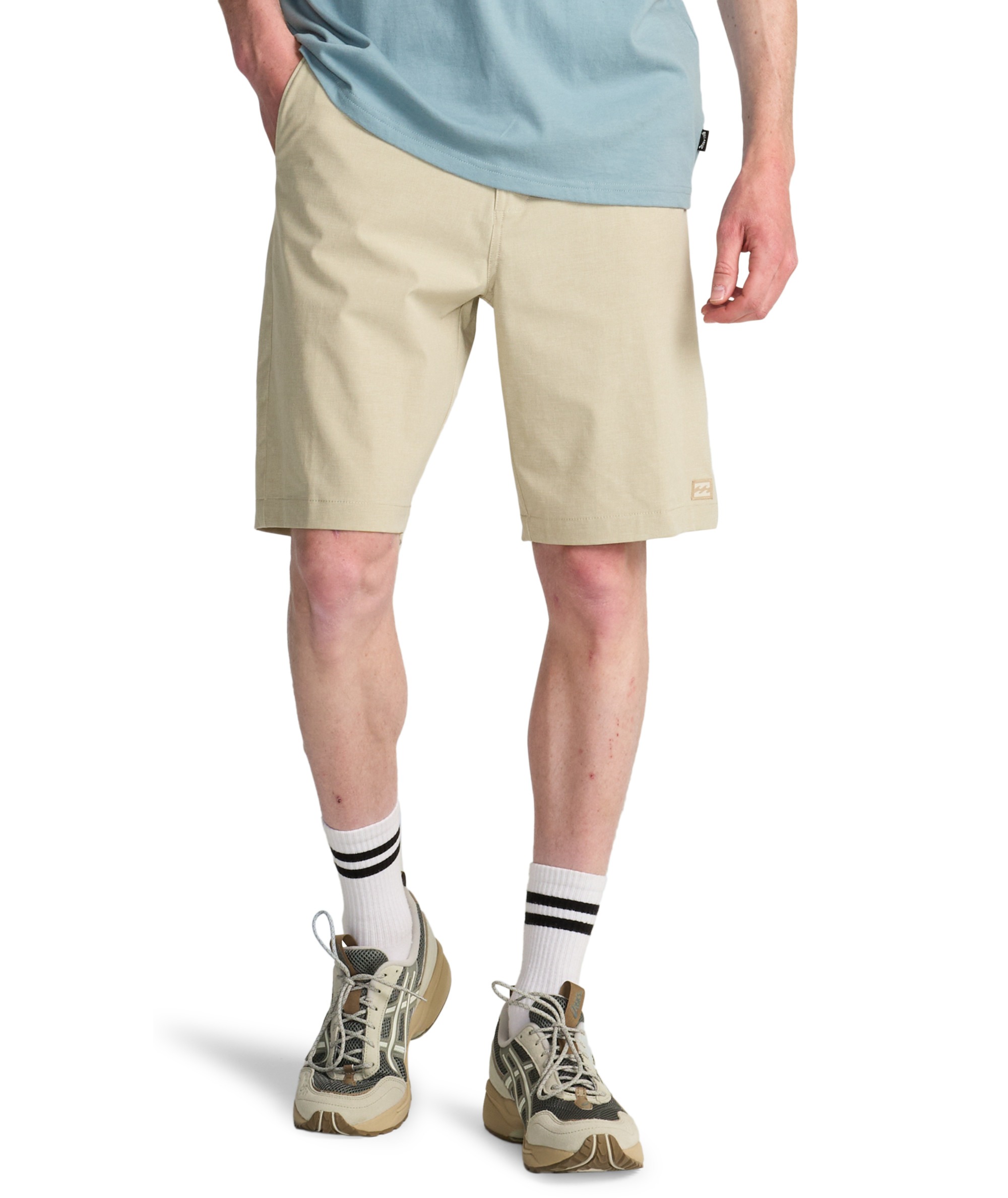 Spodenki męskie Billabong Crossfire to funkcjonalne i wygodne walkshorty submersible, idealne na lato, plażę i wodne aktywności. Wykonane z materiału 4-way stretch z recyklingowanego PET, łączą elastyczność z szybkoschnącą, odporną na wodę tkaniną Micro Repel. Klasyczny krój chino z dodatkowymi detalami – zamek w tylnej prawej kieszeni, etykieta Recycler Stretch na lewym pasku oraz logotypy Billabong – nadaje spodenkom nowoczesny i stylowy charakter.