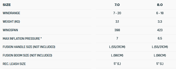 Opierając się na wyjątkowych osiągach swojego poprzednika, nasz flagowy wing został wzbogacony o nowy system Fusion, który jeszcze bardziej zwiększa jego responsywność i możliwości regulacji w warunkach ultra lekkiego wiatru.