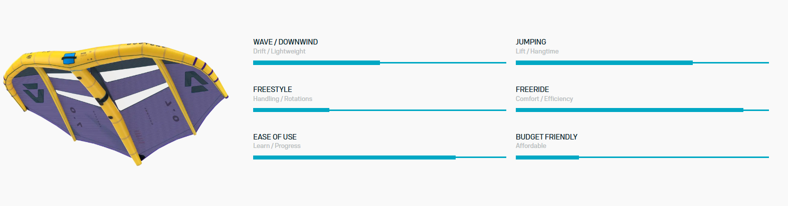Lekkie, neutralne i bezwysiłkowe w locie – skrzydło oferuje intuicyjne i responsywne wrażenia z pływania.