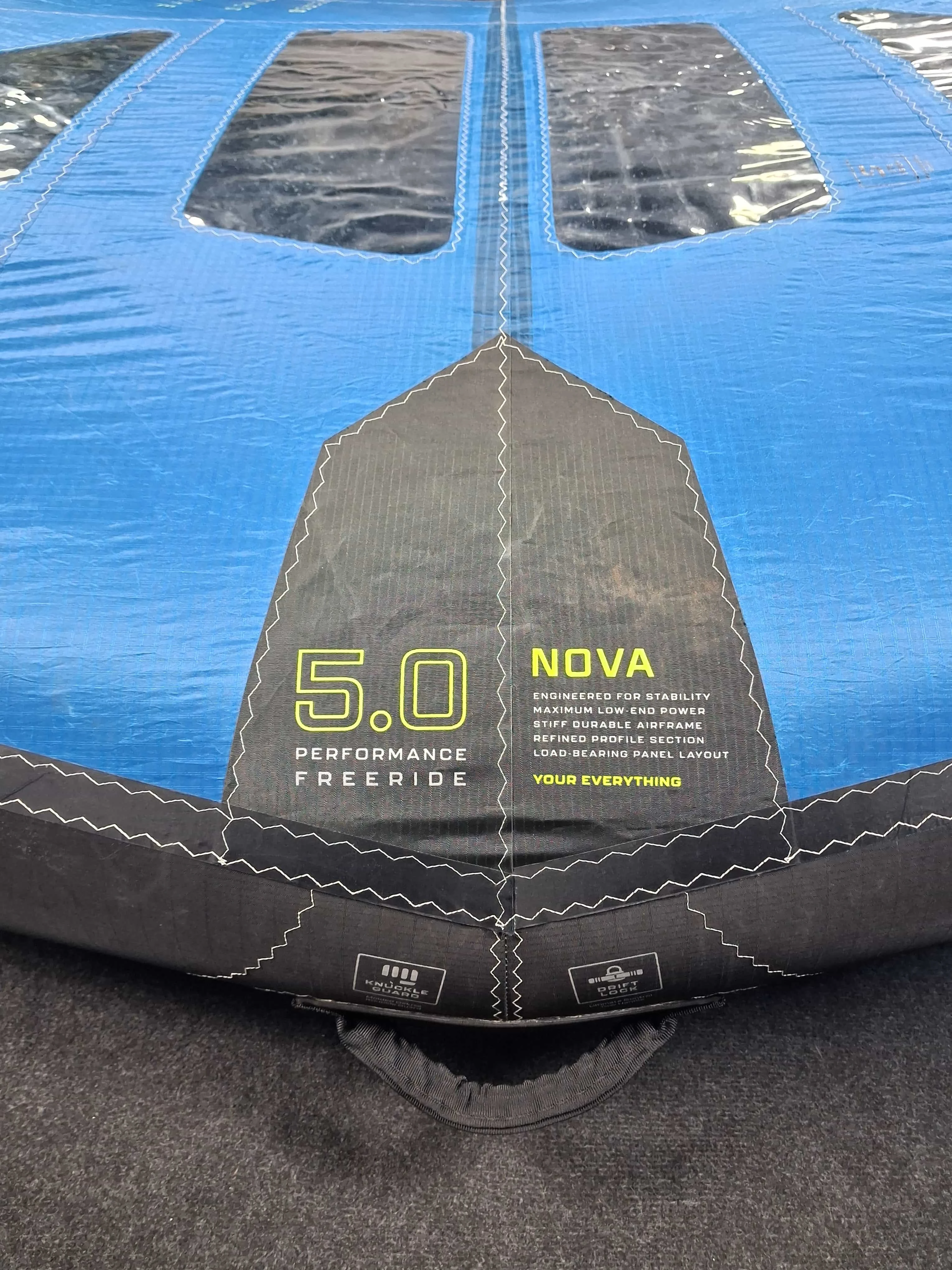 North Sails słynie z wykorzystania tej technologii w swoich sprawdzonych na podium żaglach regatowych 3Di. Wykorzystaliśmy ten sam materiał i zastosowaliśmy go w końcówkach skrzydeł Nova. Aby zrównoważyć większą sztywność skrzydła i ramy oraz zapewnić stabilność skrzydła w górnej części, zwęziliśmy średnicę krawędzi natarcia do końcówek skrzydła. Naprężenie krawędzi spływu i ogólne naprężenie poszycia zapewnia skrzydłu większą moc w dolnym zakresie. Z kolei w górnym zakresie, zdolność końcówek do samostateczności pozwala na odprowadzenie nadmiaru mocy.