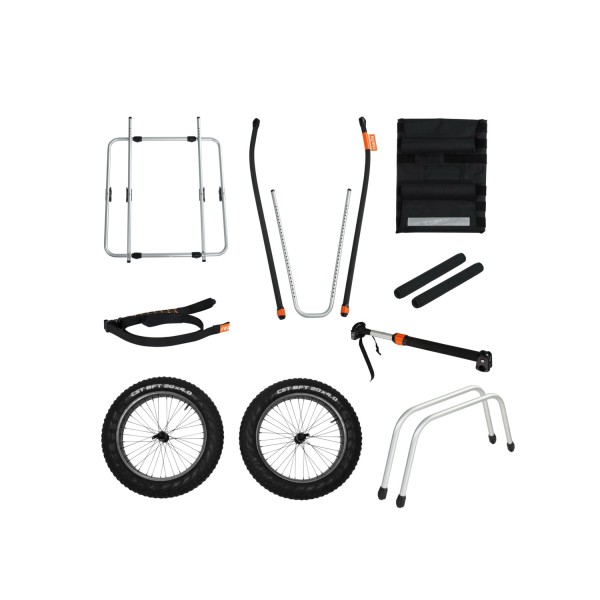 Trwały i przestronny, tekstylny bagażnik dostosowuje się bez wysiłku do szerokości ramy. Potrzebujesz przechować przyczepę? Bagażnik pełni rolę poręcznego pakunku na wszystkie części, ułatwiając transport i przechowywanie